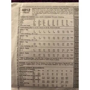 McCalls Sewing pattern4012 top pants in 2 lengths sewing pattern