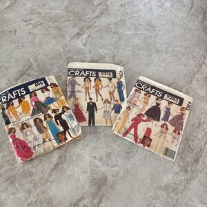 Set of McCall's Crafts sewing patterns featuring various designs. Includes colorful illustrations.