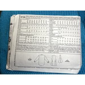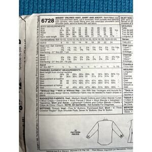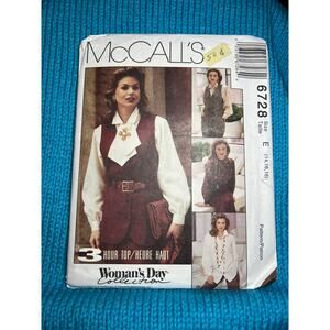 McCalls pattern 6728 button up shirt vest ascot size 14 16 18