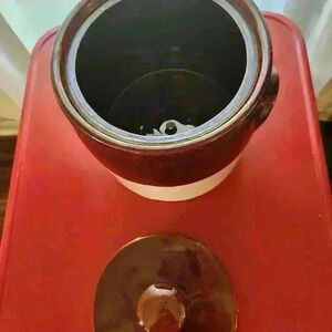 Brown McCoy 1424 crock cookie jar. No chips. Very good condition. 24 inches around. 7 inches tall. 7.5 inches wide.