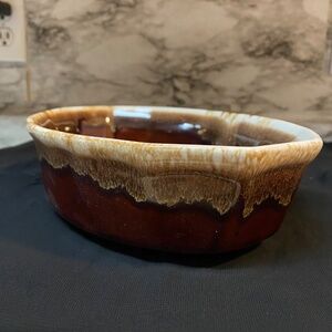 * McCoy Pottery Brown Drip Oval Baking Bowl Oven Proof Stonewear Brown Drip