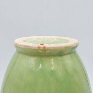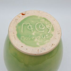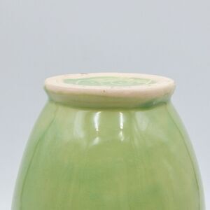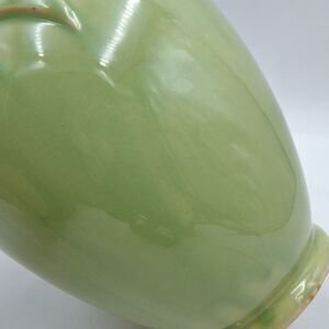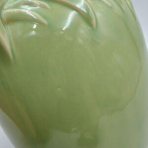 McCoy Pottery Green Leaf Embossed Handled Urn Vase 1940s Early Pastels 8.5 Inch