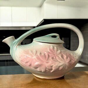 This delightful antique McCoy pottery set includes a teapot and creamer, both adorned with a charming pastel daisy design.