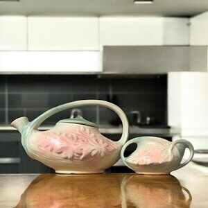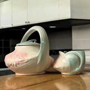 McCoy Pottery Teapot with Lid Creamer Set Antique 1940's Hand Painted Pastel Pin