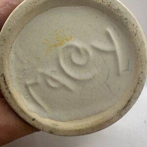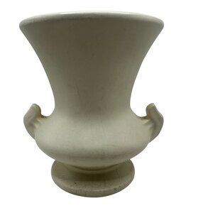 McCoy Vintage Ivory Ceramic Vase Pink Floral Relief Design & Dual Side Handles