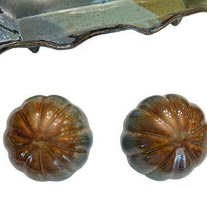 McCullough Vintage Pottery Stoneware Footed Tray, Round Balls, Dish Drip Pattern