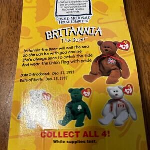 Beanie Baby with 2 TAG ERRORS! She was exclusively a Ronald McDonald House Charity bear. She belongs to 1 of 4 of the International Bears collection from 1996/ 1997. She is 1 in 4,000
