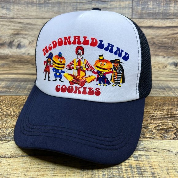 McDonaldland Cookies Mens Trucker Hat Navy Snapback 1978 Vintage Logo Retro Ad