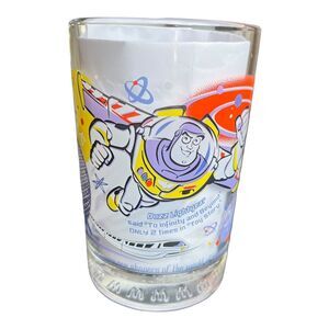 This glass is a perfect addition to any Disney collection. Celebrating McDonald's 100 years of Magic at Walt Disney World, this glass features Mickey Mouse and Buzz Lightyear. The design is colorful and vibrant, making it a great display piece. The glass is suitable for holding your favorite beverage, or simply as a decorative item. It is a must-have for any Disney or McDonald's fan.