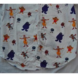 Add some fun to your wardrobe with this unique McDonald's all-over print button-up shirt! This short-sleeve shirt features a vibrant and eye-catching design.
