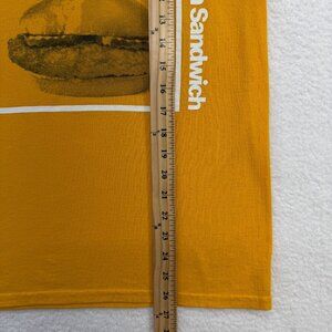 Description: McDonald's Crispy Chicken Sandwich Employee Team Member Graphic T-Shirt Yellow Size S?