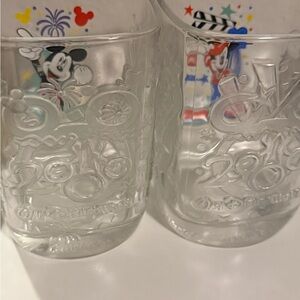 Commemorating the year 2000, each glass has Mickey dressed in the Disney Park Theme in colorful graphics on one side.