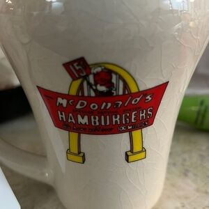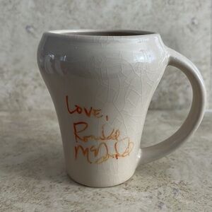 Here is a Vintage McDonalds Hamburgers Mug 14 Ounce Mug Golden Arches that was signed by Ronald McDonald! I have a huge collection of unused mugs that I am downsizing. This mug although unused has some overall crazing which you should be able to see in the picture. Sometimes that just happens with age.