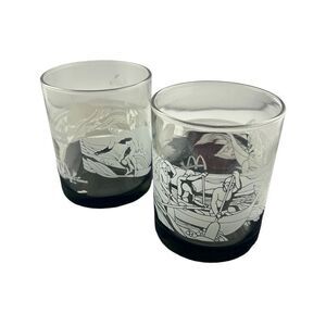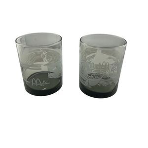 McDonald’s Hawaii Smokey Grey Glass Libbey Surfing Ocean Boat Water Sports Set of 2