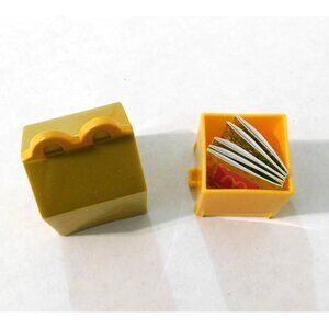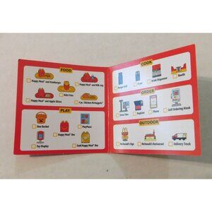 Dive into nostalgia with this collectible Mini Gold Happy Meal Box! Complete with a retro vibe, it includes a foldable brochure and shiny sticker sheet. A delightful keepsake!