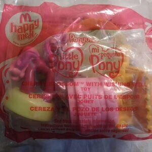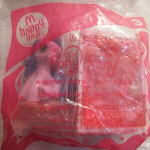 Collectible MCDONALD'S My Little Pony Toys from 2007. All 3 are toys are sealed, never opened. Includes: Kimono with Planter Box Toy #3, Cherry Blossom with Wishing Well Toy #7 & Shenanigans with Patio Toy. Plastic packaging has some storage wear. Please see photos, bundle and save.