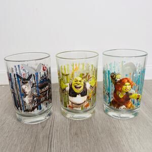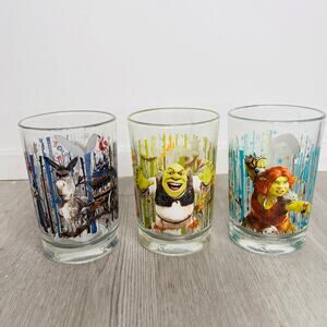 McDonald's Shrek 2010 Glass Collector's Cups Set of 3 Dreamworks