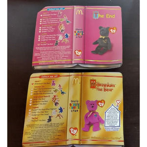 McDonald's Ty Teenie Beanie Babies RHMC Millennium 2000 + THE END SET OF 2 BEARS. Never opened. plastic has a little yellowing. See pics.
