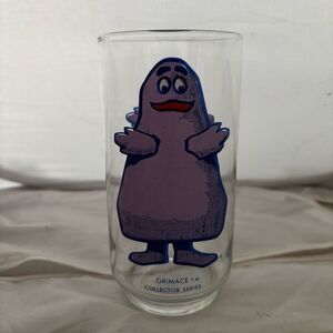 McDonald’s Vintage 1970’s Grimace Collector’s Series Glass. Clear glass with purple Grimace. 5 3/4” tall. Good condition.