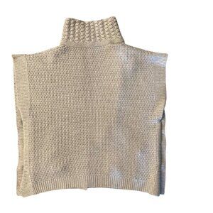 McDuff Light Gray Open Snap Front Poncho Wool Cashmere Mock Neck Sweater S/M