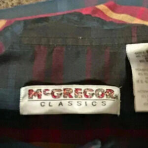 This McGREGOR button front shirt is a mens XL The shirt features a collared neckline, long sleeves with button cuffs, and a button-up closure. The multicolor grid stripes add a classic touch to the shirt, making it perfect for any occasion, whether it be for travel, party/cocktail, casual, workwear, or business.
