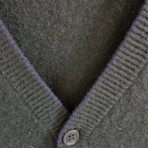 McGeorge of Scotland Vintage Men Cardigan Size L 100% lambs Wool Forrest Green with Blue edge V Neck Full Button Casual Classic Size has been determined by measuring Please see Measurements below. Had a very small hole on ribbing which has been repaired (See picture Number 4.