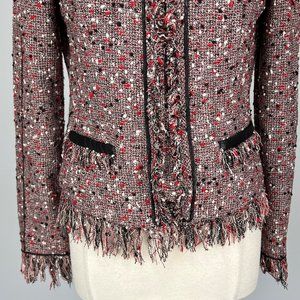 McGinn Red Bijou Tweed Fringe Blazer Wool Blend Hook Front size 8