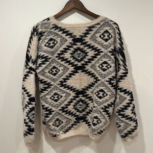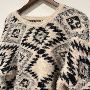 McGinn Taylor Oversized Eyelash Sweater Southwest Features: black and beige colors, the Taylor oversized eyelash texture, southwestern "aztec" style print, crew neck sweater, long sleeves