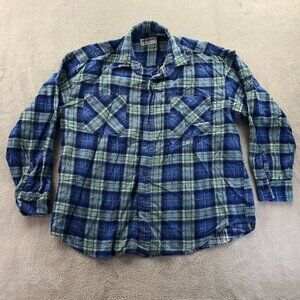 McGregor Bagpiper Mens Shirt Large Flannel Long Sleeve Plaid Classic Blue Y2K