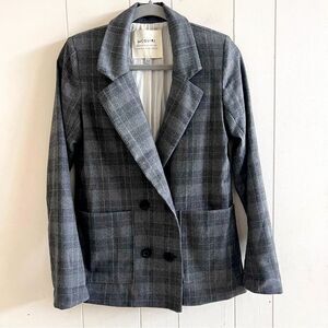 In beautiful preloved condition from a smoke and pet free home. Please review all photos before purchase and bundle for a great discount. 9 to 5 Blazer is an awesome borrowed from the boys double breasted blazer, small shoulder pads, notched collar, front patch pockets, lined w/ striped fabric meant to be seen so we roll up the sleeves & show great fashion attitude. Very well made, on the lightweight side, very stylish and a classic staple wardrobe piece for sure.A plaid blazer is as classic as it gets. When layered over a turtleneck and polished jeans, this structured staple exudes sophistication.