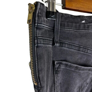 McGuire Denim pencil skirt with slight fading. Decorative button closure and front slit. Slant front pockets and patch back pockets. Exposed side zip. Unlined. We love ours paired with our favorite rocker band tee and chunky platform boots or sandals. Fabric: Super-stretch denim. 91% cotton/6% polyester/3% spandex. Wash cold. Made in the USA.