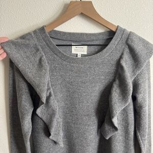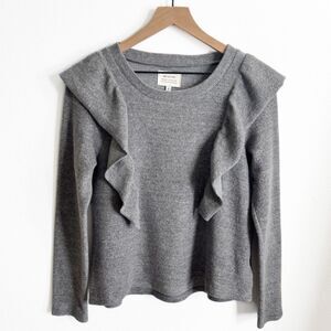 McGuire Sweater Womens Small Gray Ruffle Pullover Soft Comfy Cotton Boho Casual