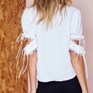 McGuire Denim White Linen Peasant Tie Eyelet Top