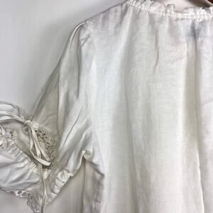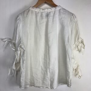 McGuire White 100% Linen Peasant Shirt Tie Eyelet Blouse Top Boho Casual XS