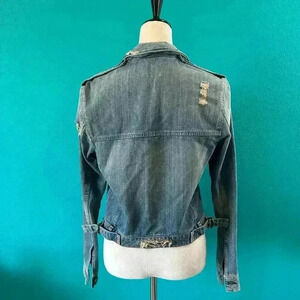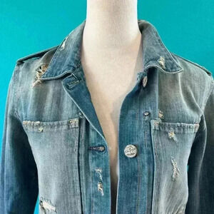 McGuire Womens Medium Wash Button Distressed Denim Jacket