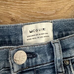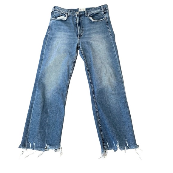 McGuire Women’s Raw Distressed Hem Mid Rise Wide Leg Medium Wash Denim Jeans GUC
