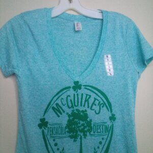 McGuire's Pensacola Destin Florida Shirt Women S V-Neck Short Sleeve Green