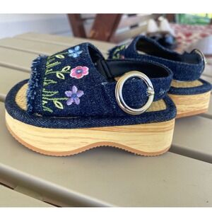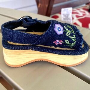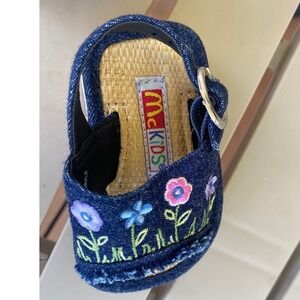 McKIDS Vintage Denim Floral Embroidered Platform Sandals Shoes Baby Size 2