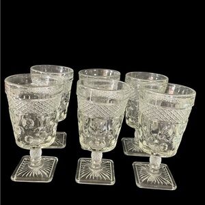 McKee Opal Clear Glass Water Goblet 1950s Set Of 6 Gorgeous Criss-Cross Dot