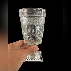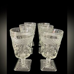 Transport yourself back to the fabulous fifties with this stunning set of six vintage clear "Opal" pattern McKee Glass goblets.