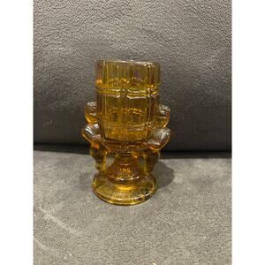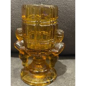 McKee Pressed Glass "Peek-A-Boo" Amber Cherub Toothpick Holder