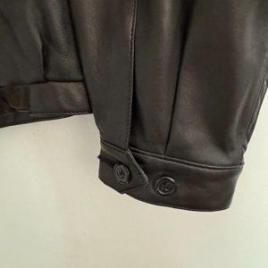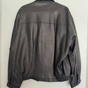 Buttery-soft genuine leather Bomber Jacket by McKenzie Tribe. Men's size Large. No tags, never worn. The jacket lining is 100% acetate. There is one inside pocket, leather trim with button closure. There are 2 outside slit pockets; outside pocket linings are 100% cotton. Cuffs are button closure (2 buttons). YKK zipper front zipper. Bottom waist has elastic sides and snap cover over zipper.