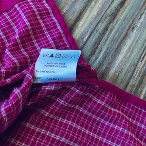 McKinley Doria women's short sleeve button up shirt has collared neckline, split hem detail, front chest pockets, and removable waist belt. Logo above right chest pocket + at back of neck. Inner tag says Sun Protection/Dry-Climate . 65% polyester/35% cotton, machine washable. Tag size is women's Medium , see below for garment measurements. Good pre-owned condition.