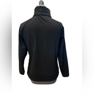 McKinley reflective Dryplus jacket in good pre-loved condition. Size 14. Black with turquoise zipper and accents. 94% Polyester, 6% Elastane. Please see photos for measurements.