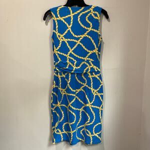 McLaughlin Blue Yellow Rope Print Wrap Dress Old Money Preppy Sz XS