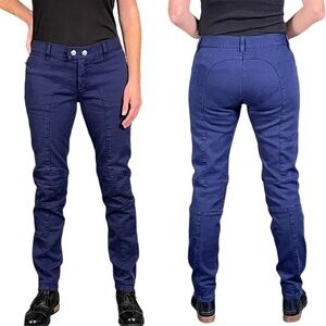 DETAIL: STRAIGHT LEG. LOW RISE. ANKLE ZIPPERS. DOUBLE BUTTON CLOSURE WITH ZIP FLY. ZIP POCKETS. QUILTED KNEE PATCHES.