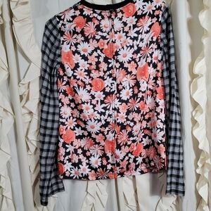 Alexander McQueen crewneck Floral Plaid Hybrid Top Shirt. Back zip closure. Bodice Multi color Floral, Plaid long sleeves. Great condition, no flaws. Viscose Wool