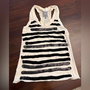 Oversized slub for. Cream colored racer back tank. Sequin striped on front. Excellent condition