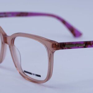 Authentic McQ by Alexander McQueen MQ0276O 003 eyeglasses in transparent pink with pink havana temples.