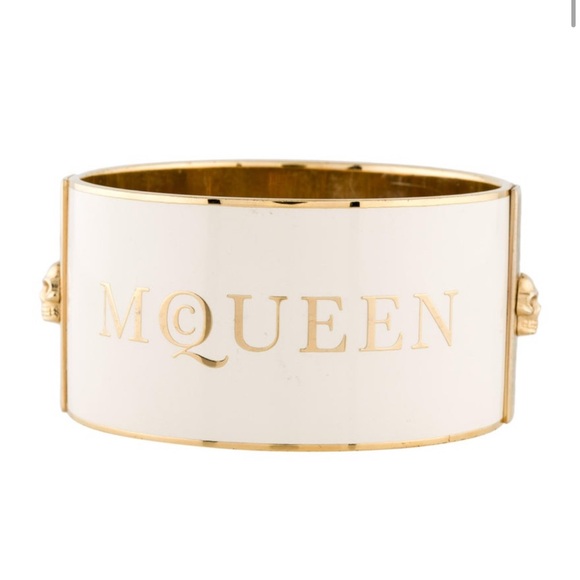Gold-plated enamel bangle bracelet with McQueen logo #luxuryjewellery
